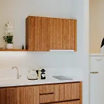 Mezi další zařízení patří konvice a trouba, které slouží k samoobsluze. Nemovitost je 500 metrů od nejbližší autobusové zastávky Triton Hotel.
